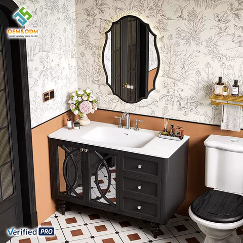 Juego de tocador de baño de madera maciza moderna Juerte OEM 2025, escurridor de cobre, espejo, grifo de fregadero, mueble de dormitorio de gran venta