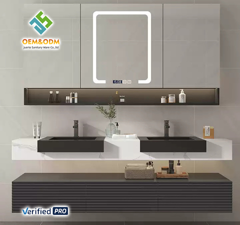 2025 OEM Juerte 현대 침실 욕실 화장대 세트 포함 책상 캐비닛 패널 거울 싱크 수도꼭지 단단한 나무