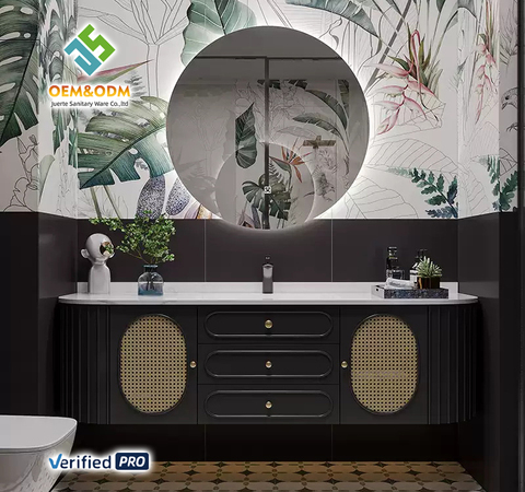 2025 OEM Juerte Modern masif ahşap banyo tezgah seti bakır süzgeç ayna lavabo musluğu dolap-sıcak satış yatak odası mobilyası