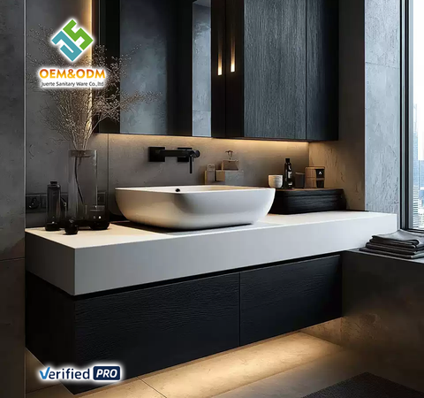Oem 2025 juerte Đen rắn gỗ hiện đại cong bồn rửa vòi cho phòng tắm vanities bảng bàn tủ Bảng điều khiển ăn uống gương